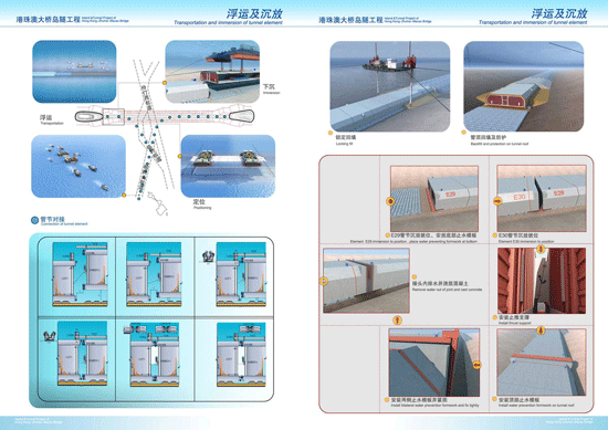 沉管浮云沉放對接過程示意圖(中交聯合體提供) 南方日報訊(記者/向松陽 高國輝 攝影/王榮 發自珠海)自首節沉管5月2日從珠海桂山島浮運出塢,港珠澳大橋海底隧道首次“海底之吻”拉開序幕。經過4個晝夜的奮戰,5日晚10點(可能推遲,具體時間到時我再和向松陽核實),E1沉管成功實現與西人工島暗埋段的對接。這是國內首個實現外海深水安裝的沉管工程,也是迄今為止世界上規模最大、最具挑戰的工程。 5日下午,記者在西人工島島頭看到,完成系泊和絞移的E1沉管停留在離暗埋段5米的位置。據悉,首節沉管于3日凌晨在8艘拖輪的拖運下抵達西人工島島頭,并于4日早上6點多完成絞移。不過,在4日進行的沉放實驗中,因島頭的水流復雜形成漩渦帶來泥沙淤積,海底基床出現了一定高差偏差!白罡哌_到5-10公分,尾部泥沙較少,只高出1公分左右!睄u隧工程項目副總工程師尹海卿說,這也是“沉管下不去”的原因所在。 這種狀況出乎工程師們的預料,據尹海卿介紹,考慮到島頭水流復雜,他們于4月30日進行過測試,當時的結果顯示滿足施工要求。5月4日完成檢查并進行分析后,施工人員抽空沉管內的水,讓沉管重新浮上來,之后10多名潛水員們開始了泥沙清理工作!耙驗殄^和纜繩都弄好了,沉管整個退出去的話要花10個小時,只能由潛水員去做!敝磷蛉障挛2點,全部泥沙清理工作已經完成,這一過程中,平均每個潛水員要在水下作業2-3個小時。 昨日下午4點許,施工人員通過沉放駁上的操縱系統,往沉管內的壓載水箱注水,E1沉管開始緩慢下沉,并引導沉管前端的導向桿落入暗埋段上的導向托架內。整個過程需要保持管體2.996%的縱坡,最后再向前平移,通過吊繩使管節以勻速、平穩的速度落在碎石墊層上,完成“著床”。 當沉管下沉到基床后,通過拉合千斤頂,使得兩個管節基本對準位置,這時要將對接處的海水抽掉!暗酵砩8點潮水最高的時候,是進行水力壓接的最佳時機!币G湔f,高潮水對管節壓載的質量更好,“就好像把蓋子蓋得更緊一樣!睋私,在兩個管節的橫截面周圍,安裝了巨大的橡膠止水帶,理論上的GINA止水帶壓縮量是10幾公分。潛水員水下檢查確認后,向沉管水箱加入壓載,使其負浮力達到沉管重量的5%,保持沉管一定的抗浮安全系數,最后打開沉管間的入孔門進行測量。 尹海卿介紹,沉管對接要控制3個誤差,“沉管對接的精確度要求非常高,兩邊橫向偏差要控制在在2厘米之內,縱向偏差3.5厘米之內,軸線偏差控制在5厘米之內! 至晚上10時(可能推遲),經過海水水壓對接后,首節沉管順利完成了對接。 沉管對接關鍵步驟: 1.沉管出塢 2.沉管浮運 3.系泊 4.絞移 5.管節沉放 6.千斤頂拉合 7.高潮位水力壓接 8.貫通測量 9.管內精調 10.安裝船撤離 11.鎖定回填 |