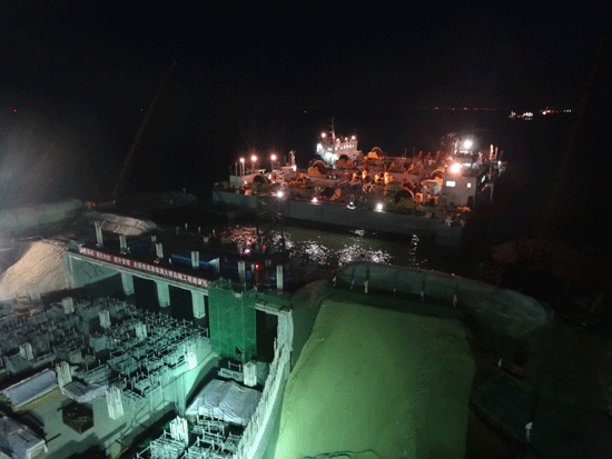 昨日夜間,沉管與人工島暗埋段的海底之吻宣告成功(王榮攝)