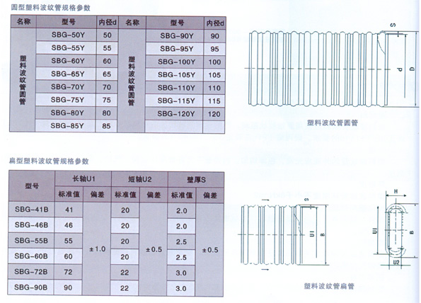 示例:2.長軸方向內徑為41mm的扁形塑料波紋管型號SBG--41B.