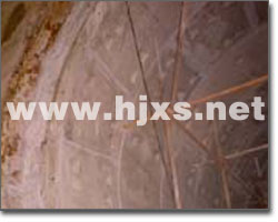 4.1.2基面處理 基面處理采用兩種方法。明顯滲漏水部位采用鑿孔注漿堵水(注漿材料為微分子納米混合防水堵漏材料或水溶性聚氨酯),其他部位滲水采取快凝水泥封堵。快凝水泥SH外滲劑與425#普通硅酸鹽水泥按比例混合,或用雙快水泥。然后進行封堵。水泥凝結時間調節在2min左右。