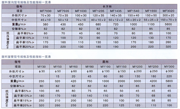 目前塑料芯體有矩形、中空矩陣、圓形中空圓形等多種結(jié)構(gòu)形式。該材料克服了傳統(tǒng)盲溝的缺點(diǎn),具有表面開孔率高,集水性好,空隙率大,排水性好,抗壓性強(qiáng), 耐壓性好,柔性好,適應(yīng)土體變形,耐久性好,重量輕,施工方便,工人勞動強(qiáng)度大大下降,施工效率高,因而受到施工單位的普遍歡迎,并得到廣泛的應(yīng)用。